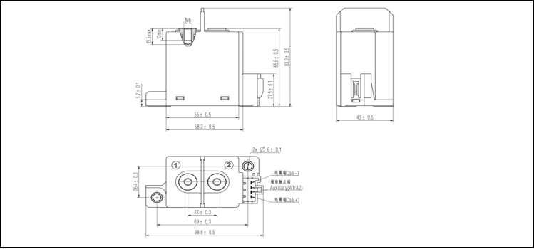 | 接触电阻 | ≤0.3mΩ(@150A) | 额定负载电流 | 150A | |||||