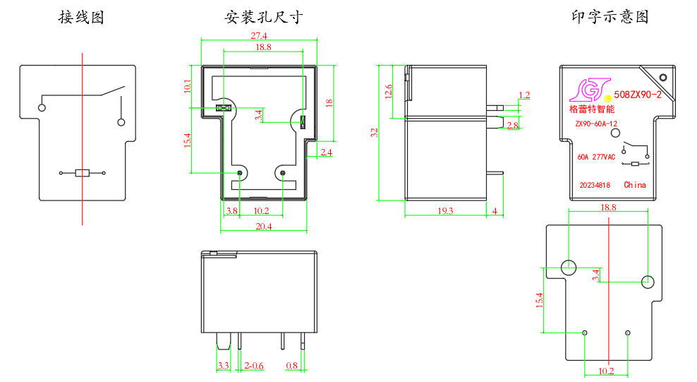 | Contact load (resistive) | 60A/277VAC | 60A/30VDC(DC) | ||||||